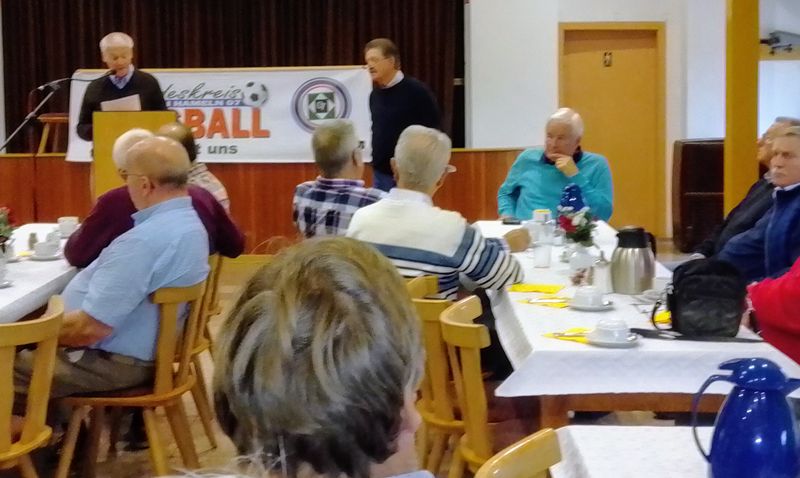 Neben dem ältesten Teilnehmer Wilfried Wunram konnte Frank Lorenz 54 Fußballfreunde beim 151. Treffen begrüßen. Von Horst Ellebracht und Manni Kühne, der im September seinen 78. Geburtstag feierte und zur Zeit noch in der Reha weilt, richtete er viele Grüße aus. Manni hofft, beim nächsten Treff wieder dabei zu sein. Frank Lorenz spielte noch einmal auf den von Eckhard Koss organisierten Besuch von Gerd Bohnsack an, der in einem „interessanten Vortrag“ aus dem Nähkästchen über sein Leben plauderte, und dem es beim Frühstückstreffen sehr gut gefallen hat. Darum möchte Bohnsack im nächsten Jahr versuchen, dass er einem anderen interessanten Sportler den Besuch beim Freundeskreis in Hameln schmackhaft machen kann. Lorenz ging kurz auf den Besuch mit 26 Teilnehmern in der Hannover 96 – Fußballakademie an. Er war enttäuscht und ärgerte sich noch immer, dass die abschießende Einkehr mit Imbiss und Getränk in der Akademie so kläglich in die Hose gegangen ist und der Ausflug ohne richtig „Tschüss“ zu sagen und die Heimreise so „zerfleddert“ angetreten werden musste. Um allen, die nicht mit in Hannover waren, einen Einblick über den Besuch zu geben, berichtete Wilhelm Schwarz (Foto oben) aus seiner Sicht über den Besuch und die Geschichte des Eilenriede Stadions und der Hannover 96 Fußballakademie. Anlässlich des 75. Geburtstages von Günter Netzer zitierte Frank Lorenz einige seiner Sprüche, wie: „Ein Fußballtrainer hat nur 50 Prozent Einfluss, aber immer 100 Prozent Schuld“ oder „Was mich wirklich berührt hat, ist diese Panik, diese Angst der Spieler, am Spiel teilzunehmen!“ Mit dem Hinweis auf das Treffen am 5. November und das traditionelle „Grünkohlessen“ am 3. Dezember wünschte Lorenz den Sportfreunden einen guten Heimweg. Karl-Heinz Teiwes