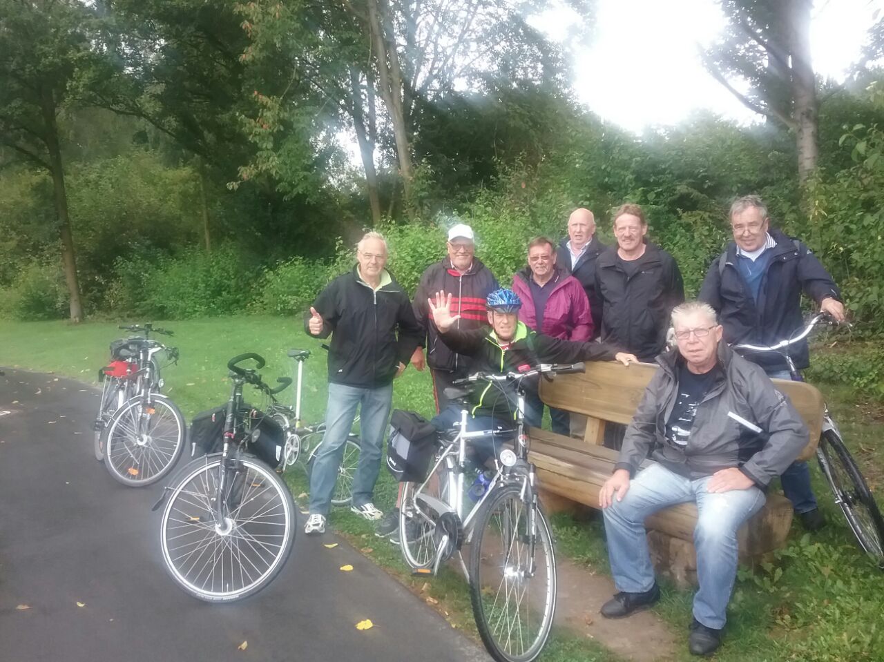 Noch einmal mit dem Fahrrad unterwegs: Die Augusttour führte die 07er diesmal immer an der Emmerentlang von Steinheim nach Emmerthal und von dort ins Vereinsheim. Klar, dass sich die wackeren Biker im 07-Heim mit Kaltgetränken & Co belohnten und sich auch bei Friedel für die gute Organisation bedankten. Foto: Ralf