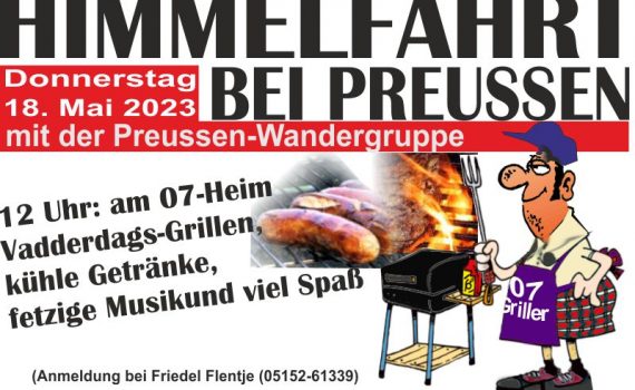 Himmelfahrt wohin? Natürlich zum Preussen 07 Vereinsheim! Ab 12 Uhr heizt die Wandersparte den Grill…